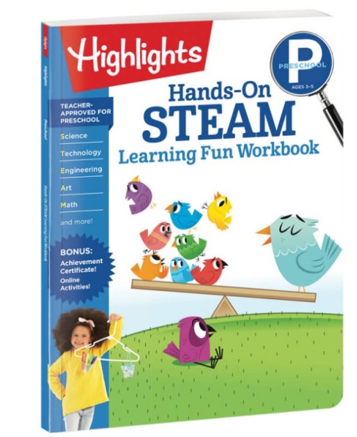The hands-on experiments, projects and activities in this Preschool Hands-On STEAM Learning Fun Workbook get kids ages 3 to 5 to think critically and creatively while having fun. STEAM (Science, Technology, Engineering, Art and Math) learning encourages kids to experiment and engineer, to make mistakes and learn from them, and to be problem-solvers and critical thinkers — now and for life.