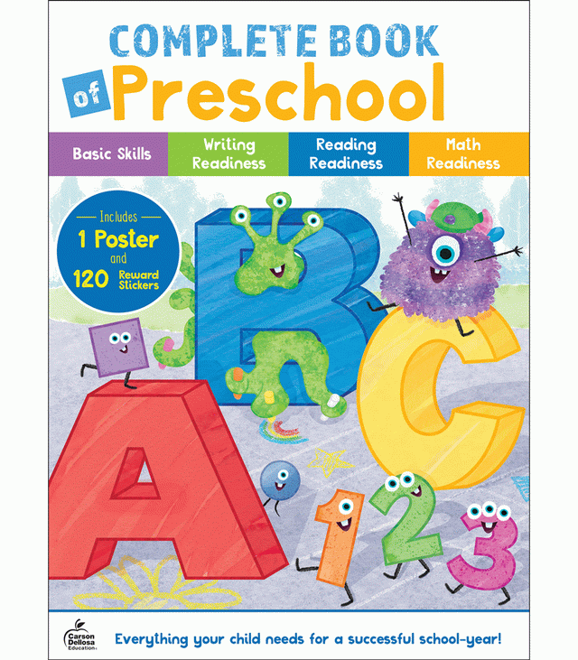 The Complete Book of Preschool helps preschoolers learn and enhance essential skills to prep for kindergarten success. This 256-page book offers a full complement of instruction and grade-appropriate activities covering colors, shapes, letters, numbers, and writing. Students will write, trace, and sound out letters, count numbers, and learn shapes and colors through interactive activities and games. The full-color pages feature clear, step-by-step instructions to follow along with each new task.