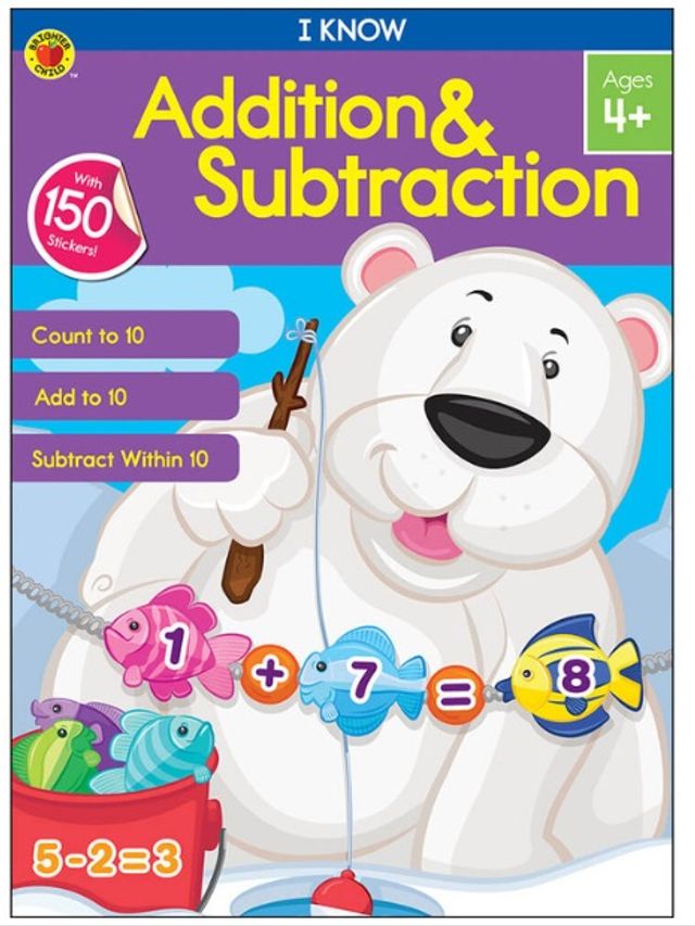 Help your child develop early math skills with the I Know: Addition & Subtraction activity book. I Know: Addition & Subtraction for ages 4+ teaches your child to add within 10 and to subtract from numbers up to 10. This early learning activity book features fun, colorful activities to keep young children engaged in learning.