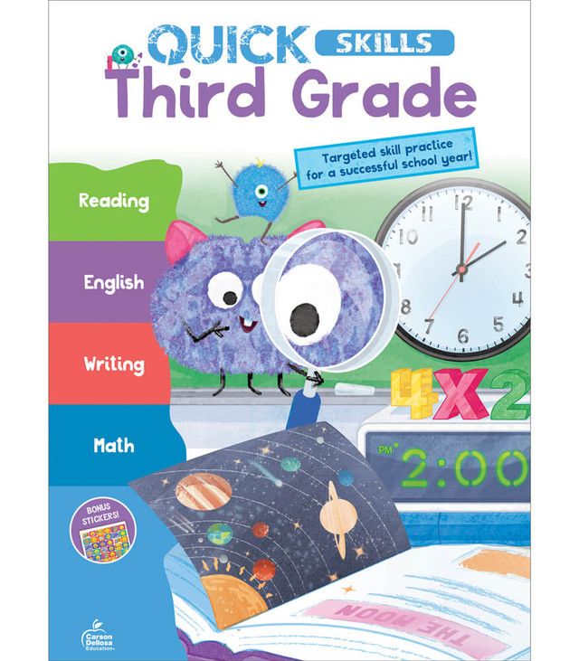 Quick Skills Third Grade Workbook is a fast and fun way for children to practice essential math, reading, writing, and language arts skills that prepare them for school success. The vibrant pages offer a variety of exciting and developmentally appropriate activities with easy-to-follow directions to allow your child to work independently and increase their confidence.
