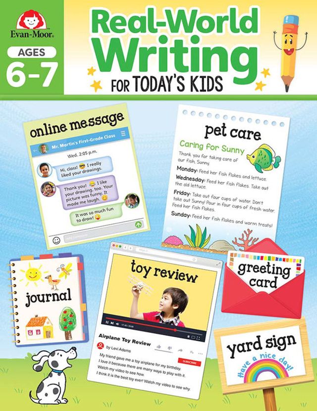 Improve children’s writing and teach them valuable life skills at home using creative real-life writing activities. The colorful illustrations provide fun and simple writing exercises to show children how diverse and innovative writing in today’s world can be.