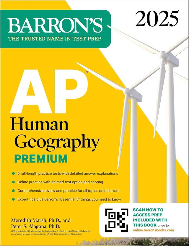 Barron’s AP Human Geography Premium, 2025 includes in‑depth content review and practice. It’s the only book you’ll need to be prepared for exam day.