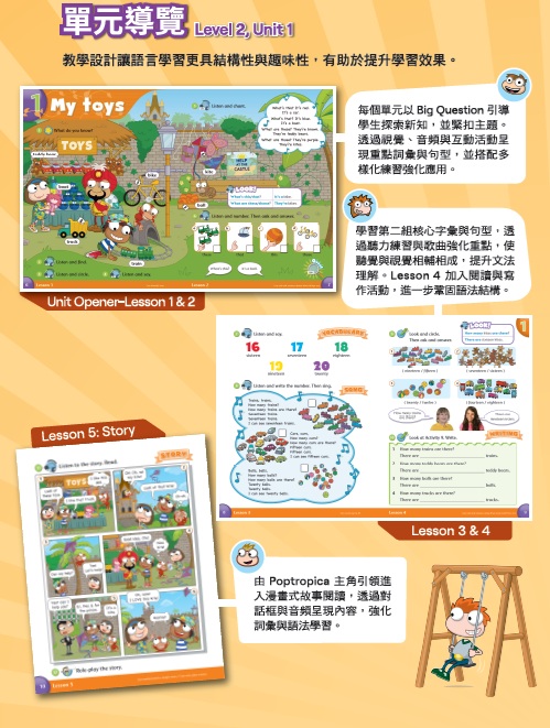 1) 引人入勝的故事和生動角色,激發想像力並提高學習興趣