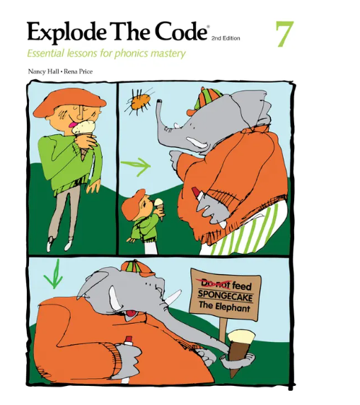 《Explode The Code》第7冊向學生介紹以下概念:軟音c和g的發音;不發音的子音組合(例如-dge、-mb、kn、wr、不發音的t、不發音的h、ph);以及ear、ei和eigh等單字的發音。透過各種筆紙練習,學生將能夠練習拼讀,從而讀寫多音節單字和短語。