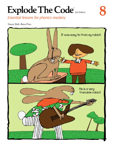 《Explode The Code》第8冊向學生介紹更複雜的詞素單位,包括後綴和詞尾(例如-ness、-less、-ous、-or、-ist、-ity、-ture、-ment、-able、-ible、-sion/tion、-ance/ence、-tive/sive、-ify、-ize 和 -ti/ci)。透過各種筆算練習,學生將學習如何組合詞根詞綴來構成多音節詞,並透過學習常用後綴和詞尾的含義來擴充詞彙量。
